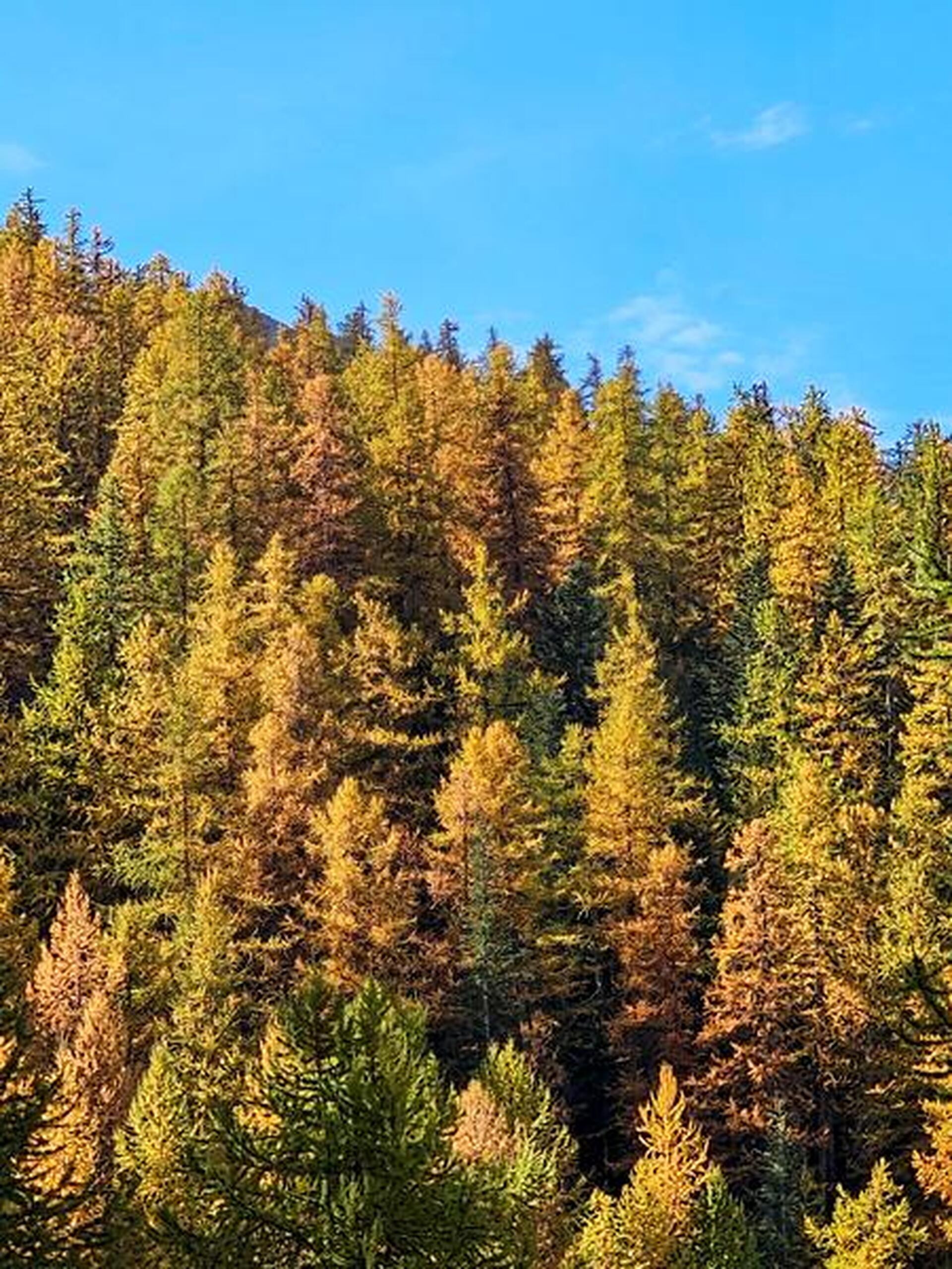 - La montée se fait alors un peu plus soutenue à travers la forêt, jusqu’à déboucher sur l'oratoire Saint-Augustin, perché sur l'éperon rocheux surplombant le Briançonnais. Vous voilà sur la clairière du Mélézin , ses chalets d’estive et sa vue imprenable.