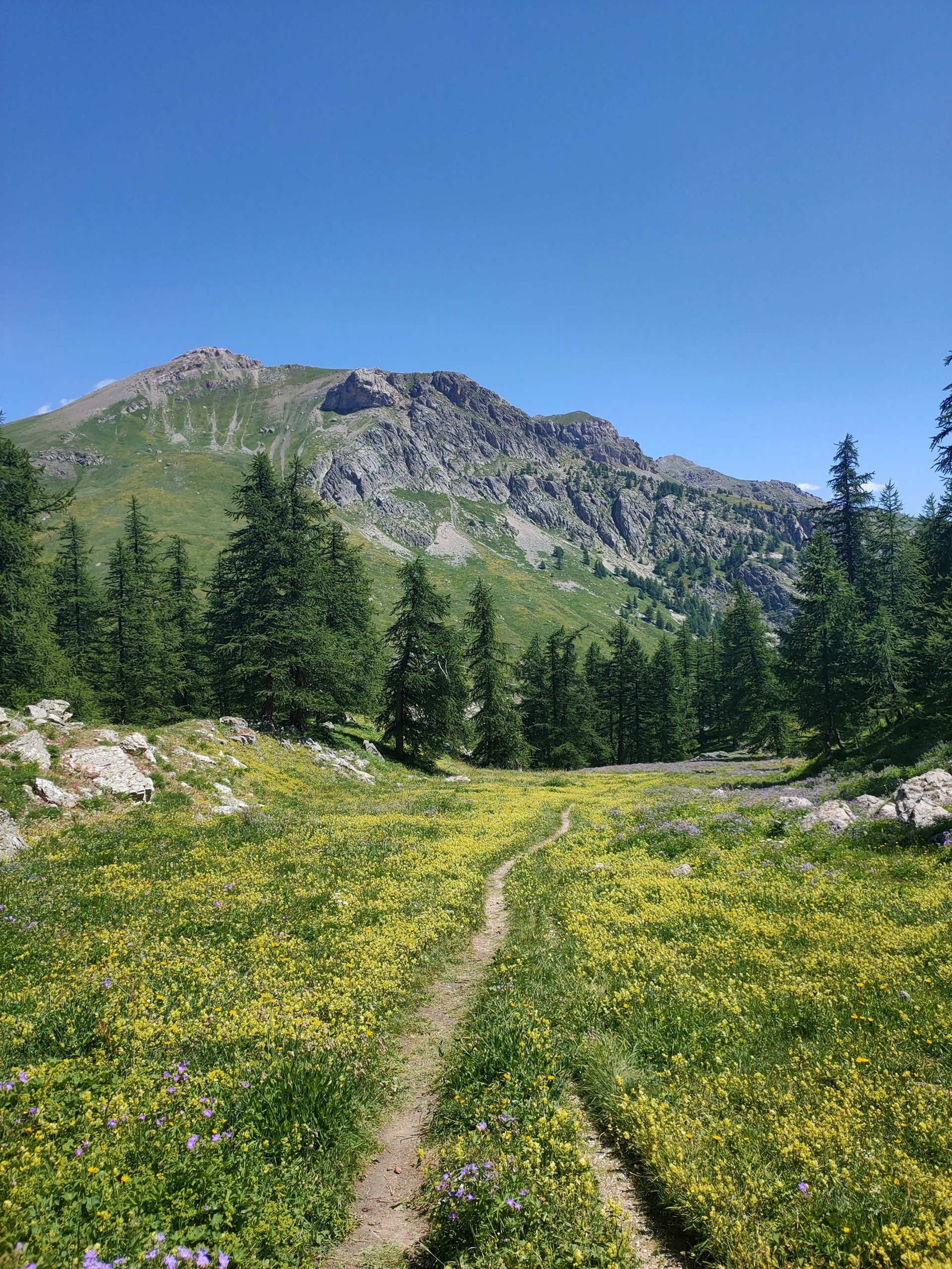 Franchir la barrière et continuer tout droit au cœur des Partias via un large sentier sur 600 mètres environ. - A la bifurcation prendre le sentier de gauche en direction du Col de la Trancoulette (panneau). Le sentier s’élève en forêt sous le Rocher Jaune, remonte un vallon puis entame une courte montée soutenue jusqu’au col.